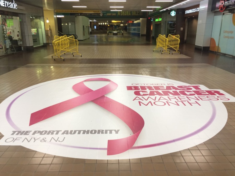 A new look for the Port Authority Bus Terminal as part of its “Breat Cancer Awareness Month” campaign