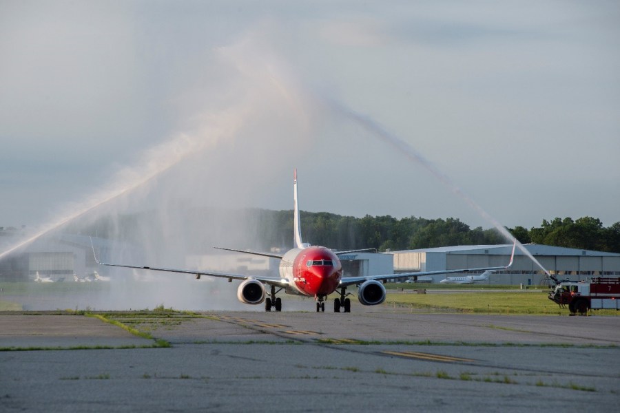 The inaugural flight of Norwegian Airlines into Stewart International Airport