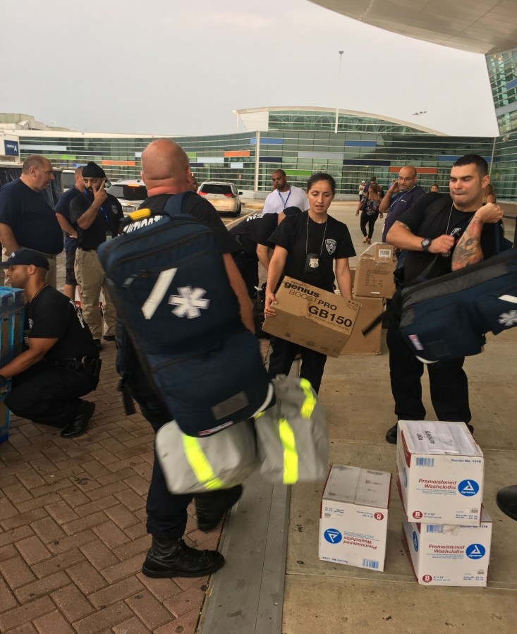 Port Authority Police Officers Orivelis Torres and Sean Fisher unloading supplies