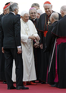 In April 2008, Pope Benedict XVI arrives at JFK and is met by local clergy.