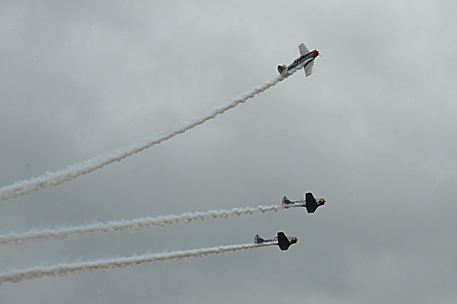 Stunt planes practice at Stewart International Airport for upcoming New York Airshow in August