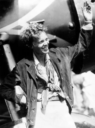 A THRONG OF ADORING FANS AWAIT AMELIA EARHART AS SHE LANDS IN NEWARK IN 1932