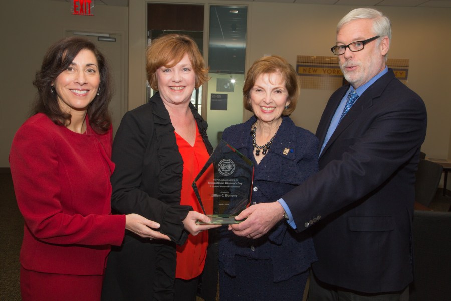 From left: Denise Berger; Mary Lee Hannell, Chief Human Capital; Lillian Borrone, Keynote Speaker and Pat Foye, Port Authority Executive Director Pat Foye. Borrone received the Port Authority “First International Women’s Day Award”