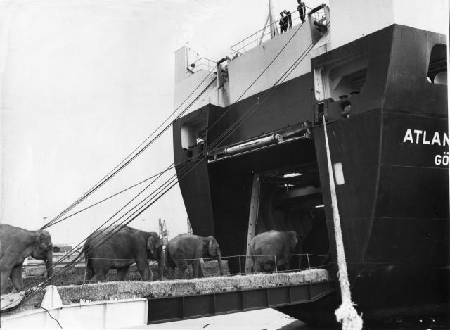 Over the next decades, everything from circus animals to PATH cars, subway cars, helicopters, giant steel beams and yachts have passed through the East Coast’s largest seaport. As far back as 1971, a traveling circus with 19 elephants crossed the Atlantic Ocean from Southampton, England to New York aboard the Atlantic Champagne. The animals traveled by sea to their new employers in Miami, the Ringling Brothers Barnum & Bailey Circus. Provisions on board the ship included: 600 gallons of water, 300 loaves of bread and 8 tons of hay.