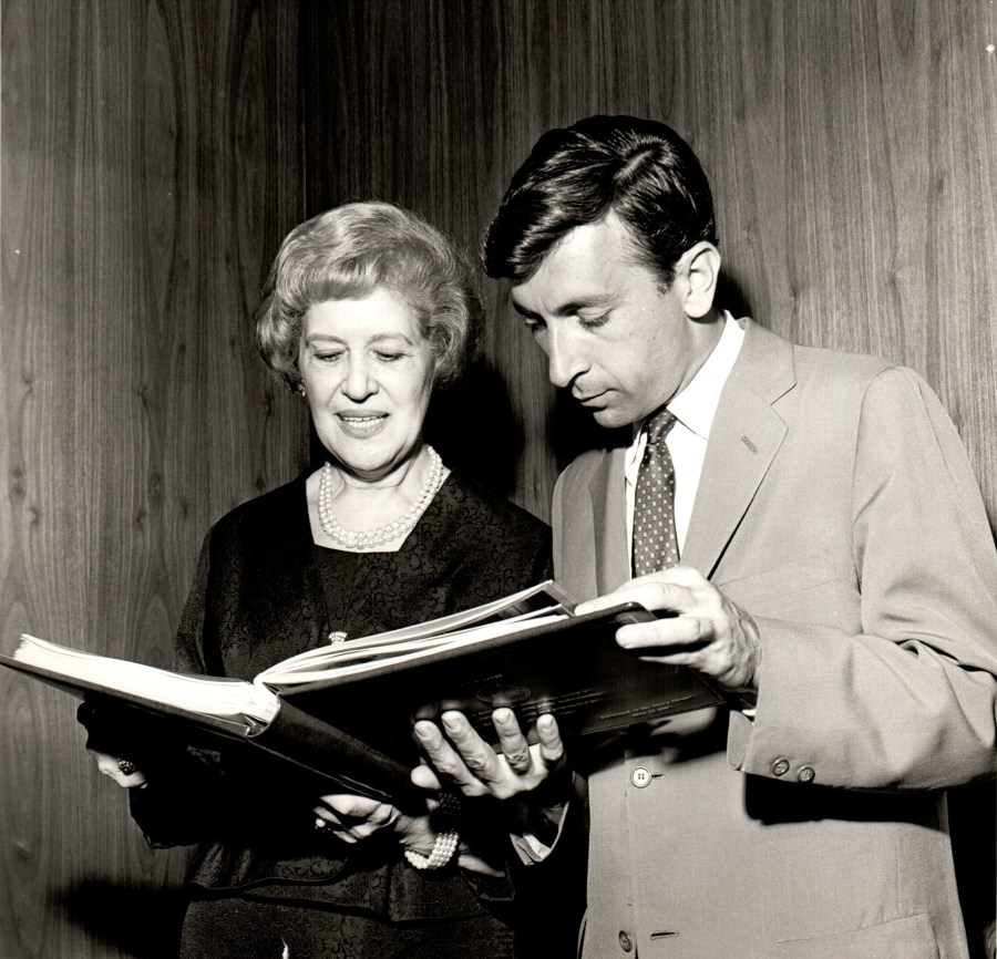 Jaffe with a young Gay Talese, a bestselling author and journalist for the New York Times from 1956 to 1965. His groundbreaking article “Frank Sinatra Has a Cold” was named the “best story Esquire ever published,” and he was credited by Tom Wolfe with creating “The New Journalism.”