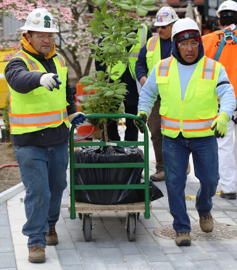 Workers Transport Anne Frank Chesnut Tree To Planting Location at WTC Liberty Park