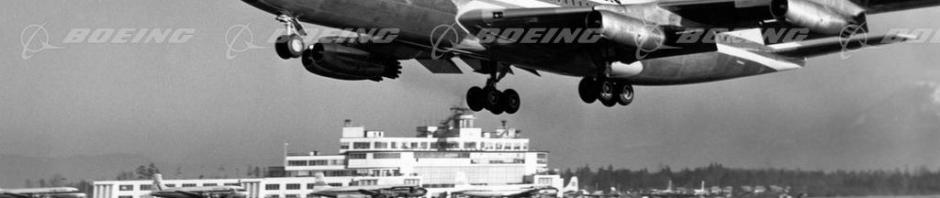 The Boeing 707 opened the commercial jet age for the U.S. on October 26, 1958. Pictured above is the 707 on the tarmac on the day of its inaugural flight. The 707 allowed the U.S. to gain the lead in commercial jet transportation. It remained in continuous production from the mid 1950s until 1977 with more than 1,000 aircraft produced.
