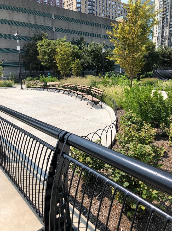 Over the course of the project, an adjacent section of the walkway north of Pier 9 was also closed due to construction of the nearby Ellipse residential development, creating a four-block detour of the waterfront path onto River Drive. With unrelated nearby construction also complete, the restoration of the walkway by Pier 9 will provide uninterrupted views of the Hudson River and the New York skyline for thousands of pedestrians clamoring for more public outdoor spaces during a global pandemic that has closed most indoor spaces.