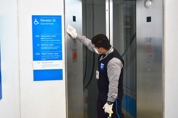 Face coverings are required throughout the WTC campus and ample signage is in place to inform and assist customers and visitors. In addition, surfaces throughout the Oculus frequently touched by visitors are being cleaned continually and all areas are disinfected on a regular basis using EPA-approved and CDC-endorsed disinfectants.