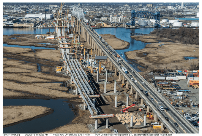 Construction of the new Goethals Bridge is pictured beside the existing Goethals.
