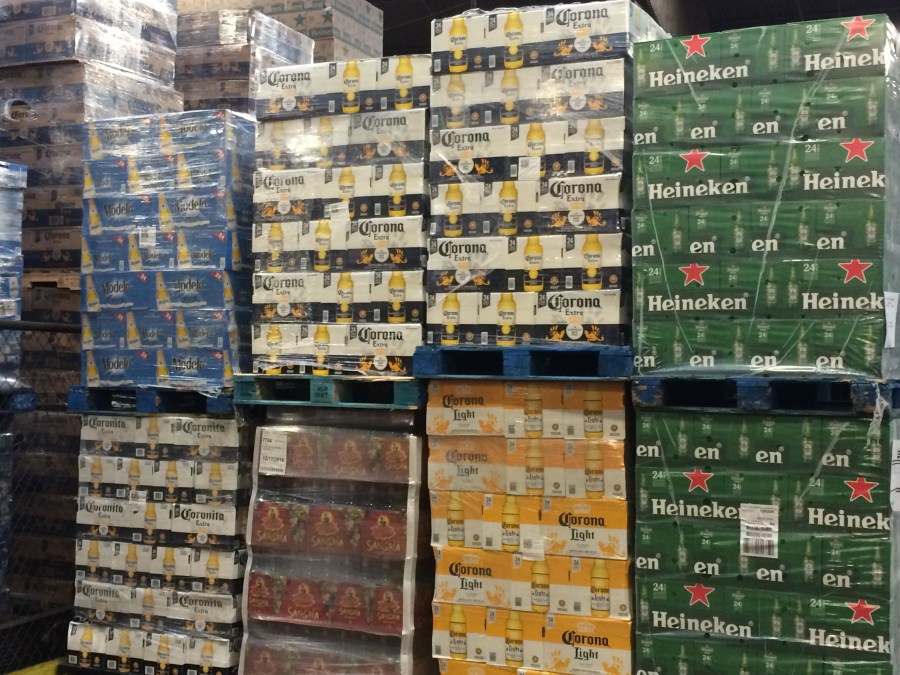 These crates of beer inside the warehouse at the Red Hook Terminal possibly are destined for a Super Bowl party somewhere in the region