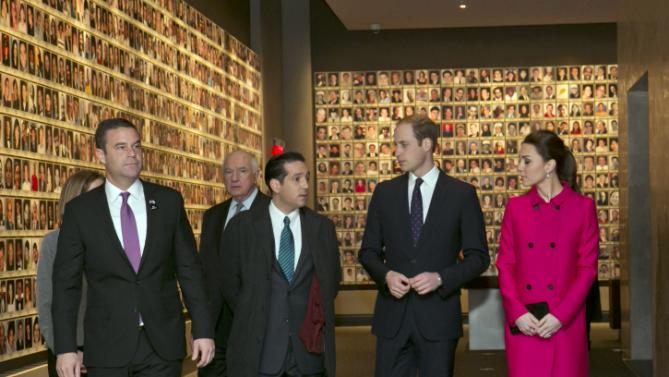 Kate, Duchess of Cambridge, and Britain’s Prince William, second from right, are escorted by Joe Daniels, left, President & CEO of the National September 11 Memorial & Museum, and Glenn Guzi, second left, Port Authority Program Director, in the Hall of Faces, during their visit to the National September 11 Museum, Tuesday, Dec. 9, 2014. (AP Photo/Richard Drew, Pool)